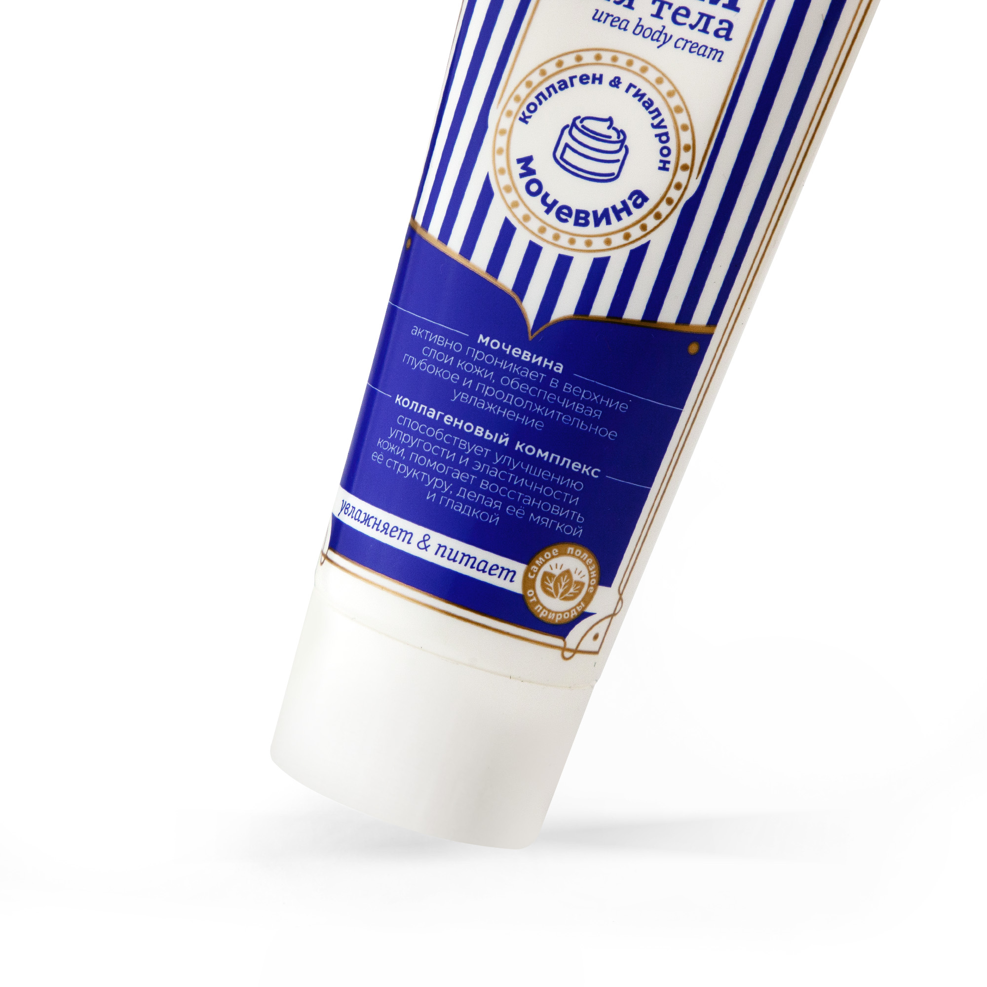 Основной уходовый компонент продукта-мочевина. Мочевина активно проникает в верхние слои кожи, обеспечивая глубокое и продолжительное увлажнение. Коллагеновый комплекс способствует улучшению упругости и эластичности кожи, помогает восстановить её структуру, делая её мягкой и гладкой.