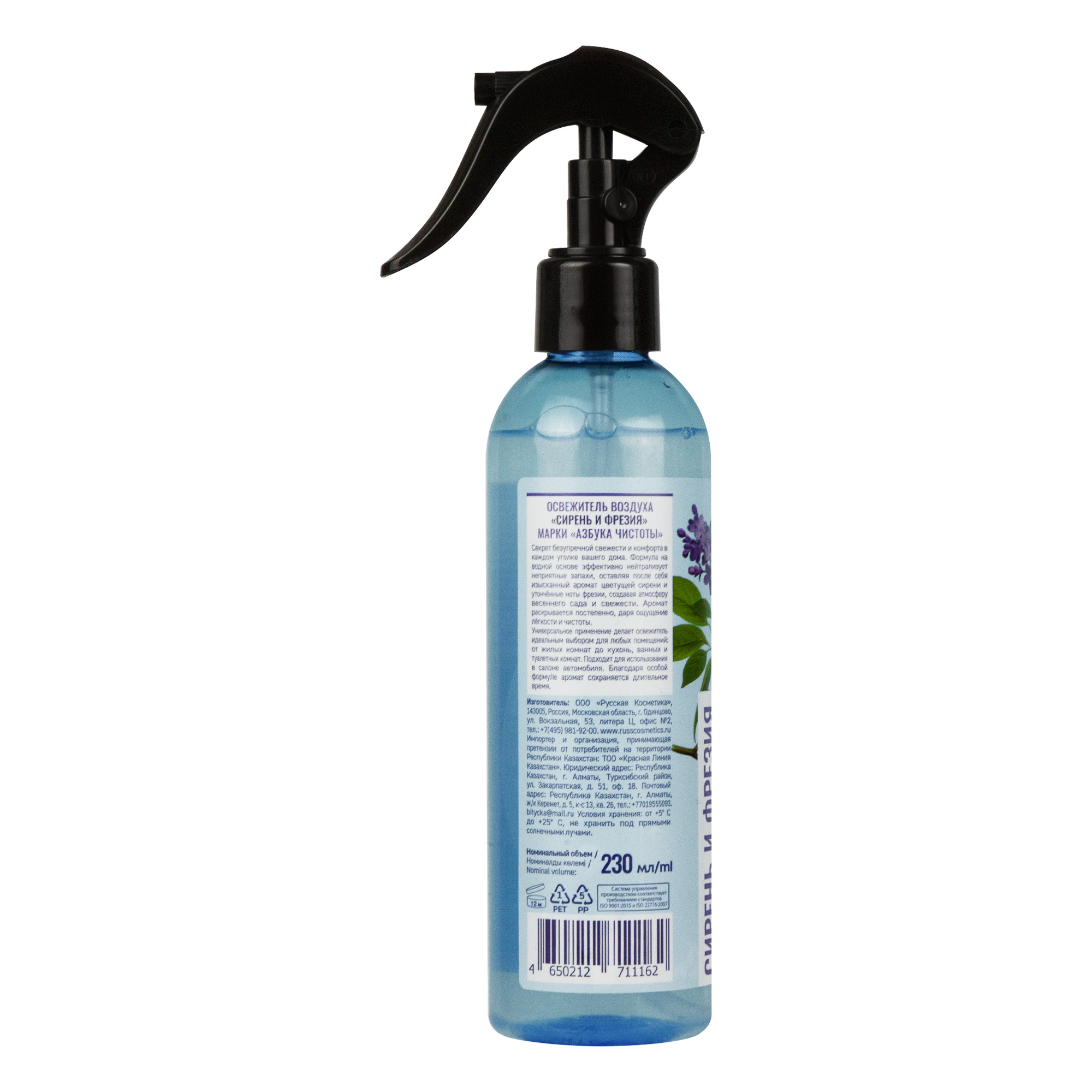 Секрет безупречной свежести и комфорта в каждом уголке вашего дома. Формула на водной основе эффективно нейтрализует неприятные запахи, оставляя после себя изысканный аромат цветущей сирени и утончённые ноты фрезии, создавая атмосферу весеннего сада и свежести. Аромат раскрывается постепенно, даря ощущение лёгкости и чистоты.
