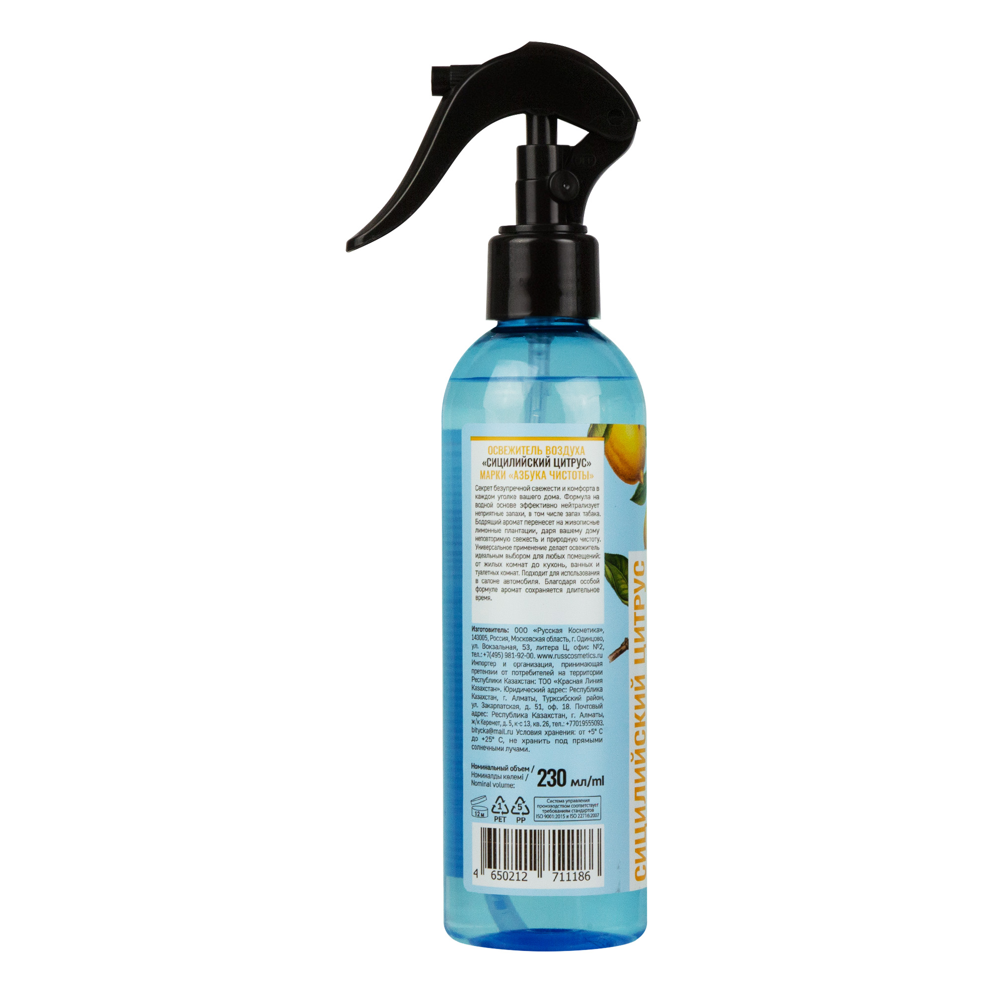 Секрет безупречной свежести и комфорта в каждом уголке вашего дома. Формула на водной основе эффективно нейтрализует неприятные запахи, в том числе запах табака. Бодрящий аромат перенесет на живописные лимонные плантации, даря вашему дому неповторимую свежесть и природную чистоту. Универсальное применение делает освежитель идеальным выбором для любых помещений: от жилых комнат до кухонь, ванных и туалетных комнат. Подходит для использования в салоне автомобиля. Благодаря особой формуле аромат сохраняется длительное время.