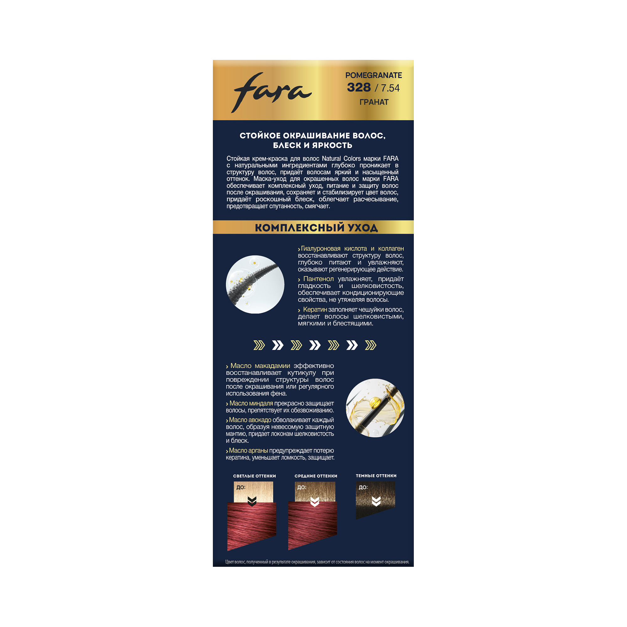 Специальная формула крем-краски Fara «Гранат» 328 обеспечивает глубокое проникновение красителя в волосы, делая оттенок более ярким и устойчивым на 30%.