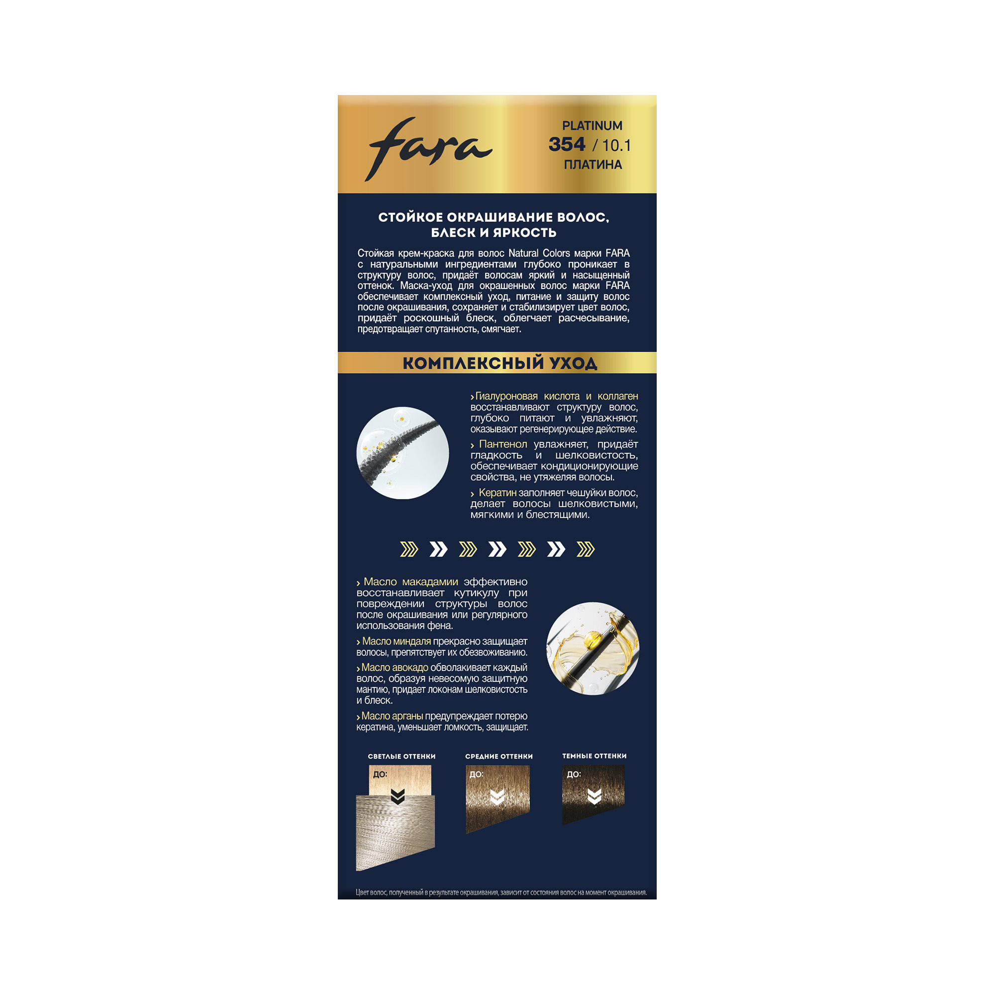 Специальная формула крем-краски Fara тон «Платина» 354 способствует глубокому проникновению красителя и повышает его устойчивость на 30%.