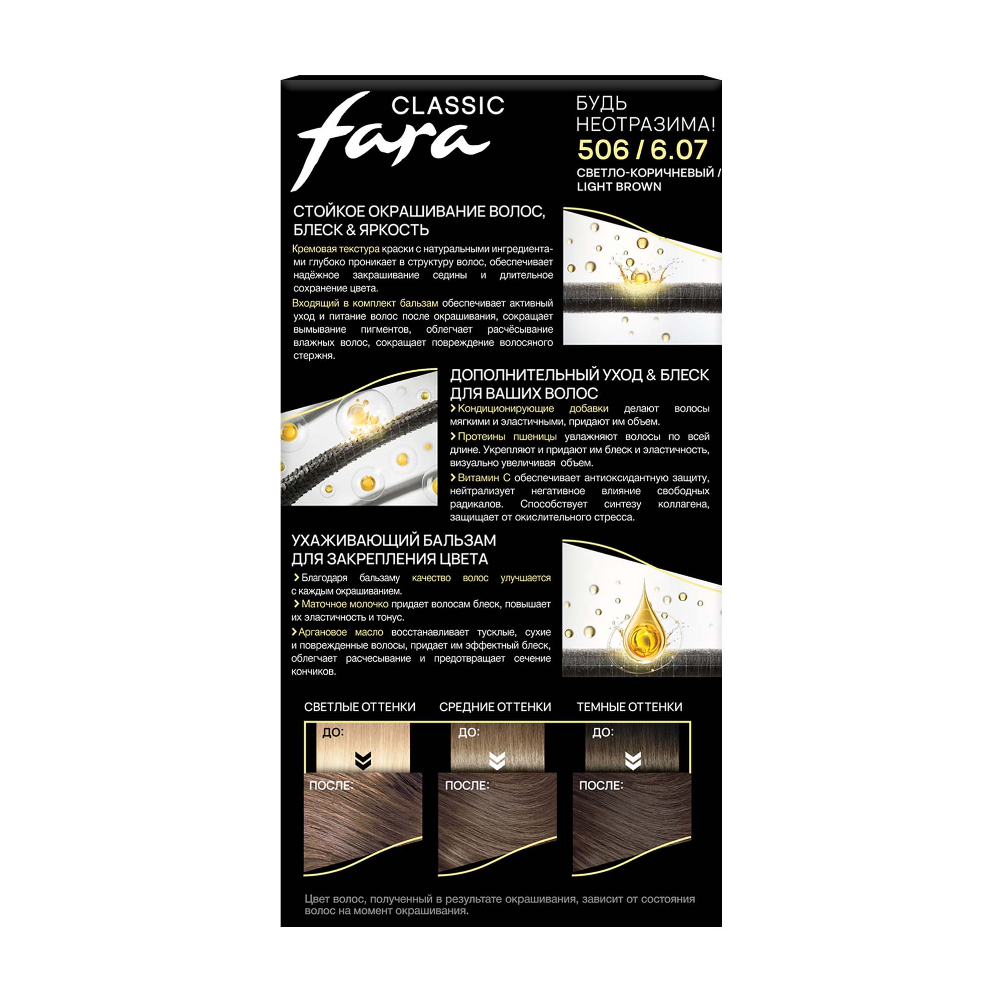 Краска для волос Fara Classic 506 мягко окрашивает, придавая волосам стойкий насыщенный цвет.