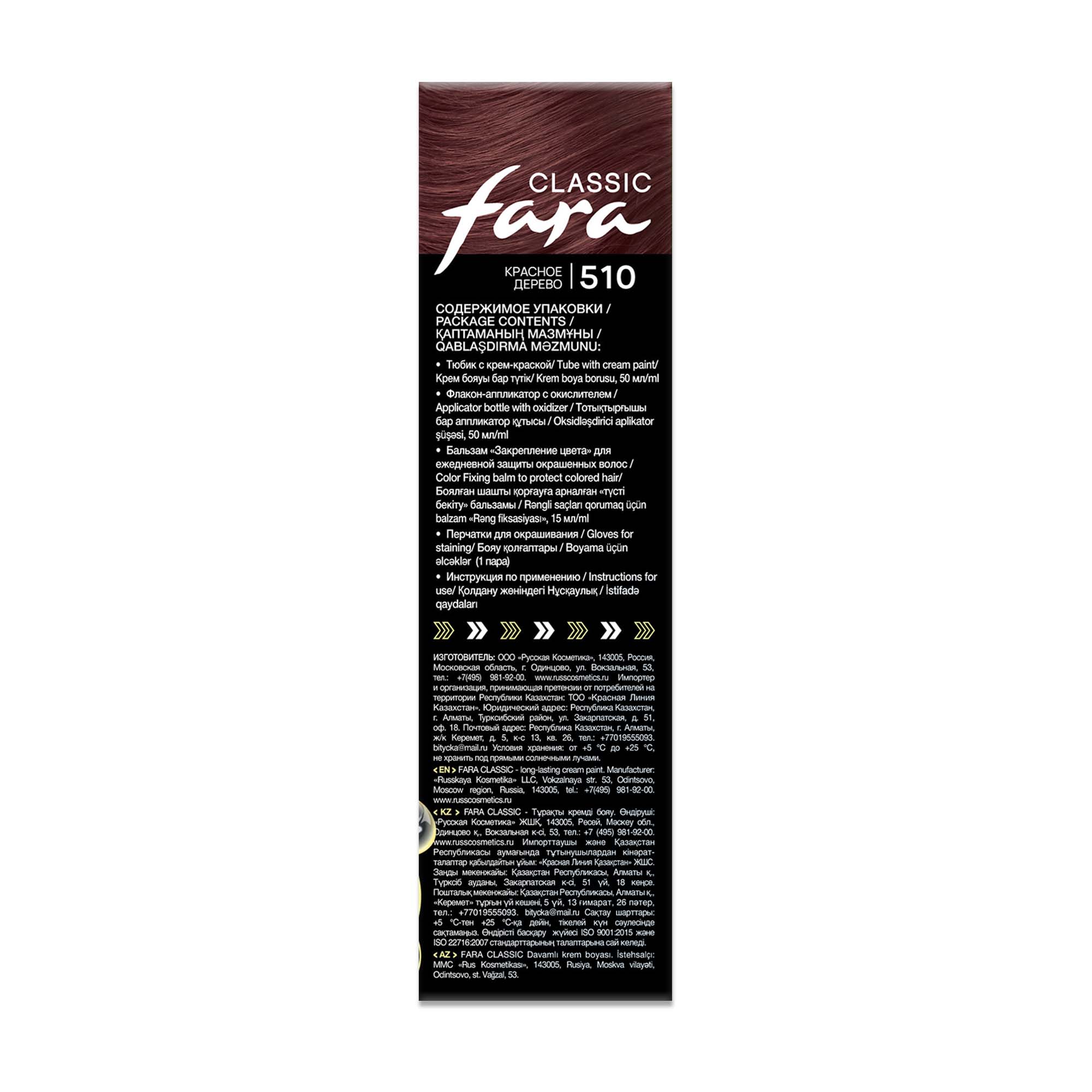 Оттенок волос красное дерево популярен уже несколько десятилетий. За всю историю своего существования он получал несколько витков популярности.Fara Classic 510 красное дерево - дерзкий и в то же время манящий! Рекомендован девушкам со светло-коричневыми глазами и светлой кожей. Яркий представитель красного, благодаря медным ноткам, является немного дерзким, но при этом, придаст образу индивидуальности.