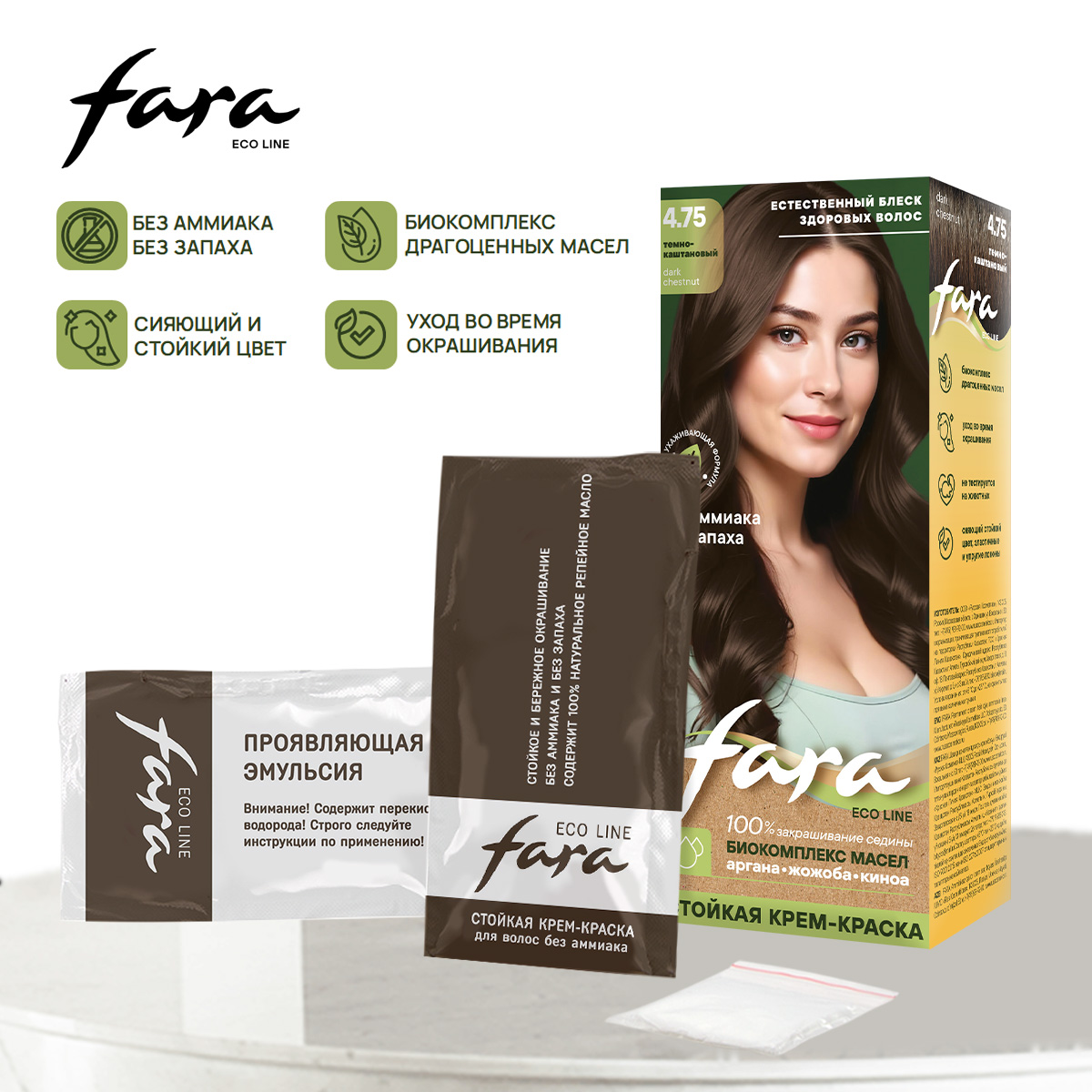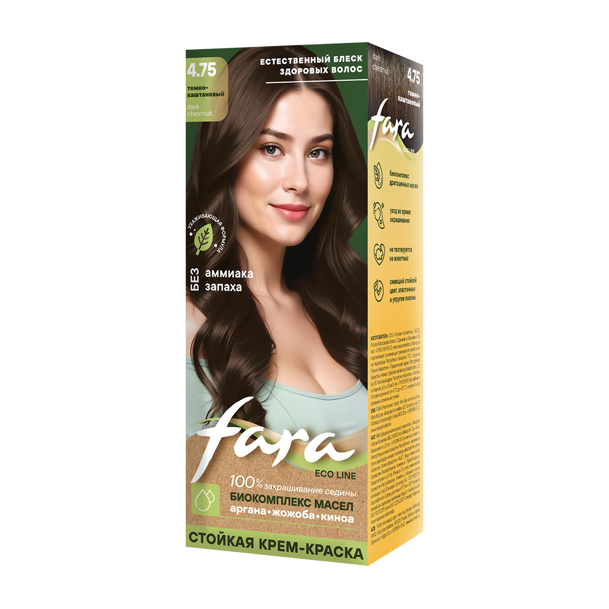 Fara Eco Line темно-каштановый - стойкая крем-краска без аммиака и без запаха со 100% натуральным репейным маслом