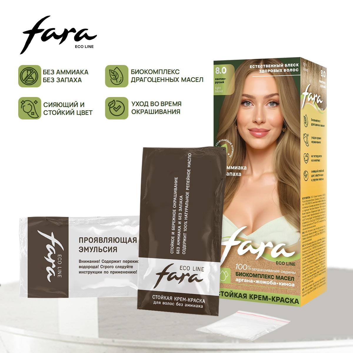 Fara Eco Line - стойкая крем-краска без аммиака и без запаха со 100% натуральным репейным маслом.
