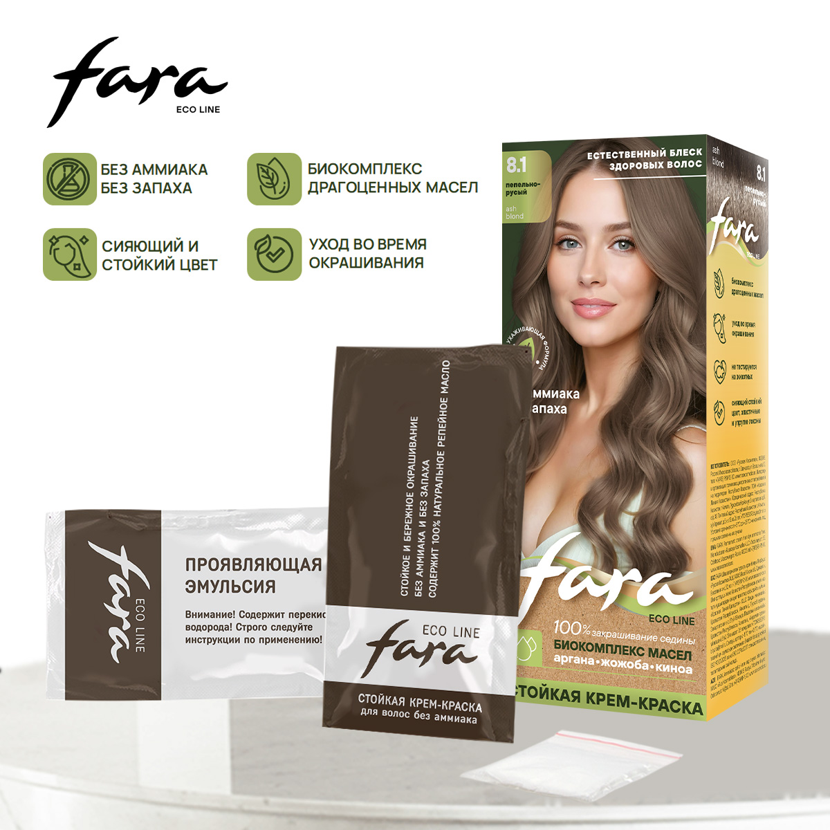 Fara Eco Line - стойкая крем-краска без аммиака и без запаха со 100% натуральным репейным маслом.