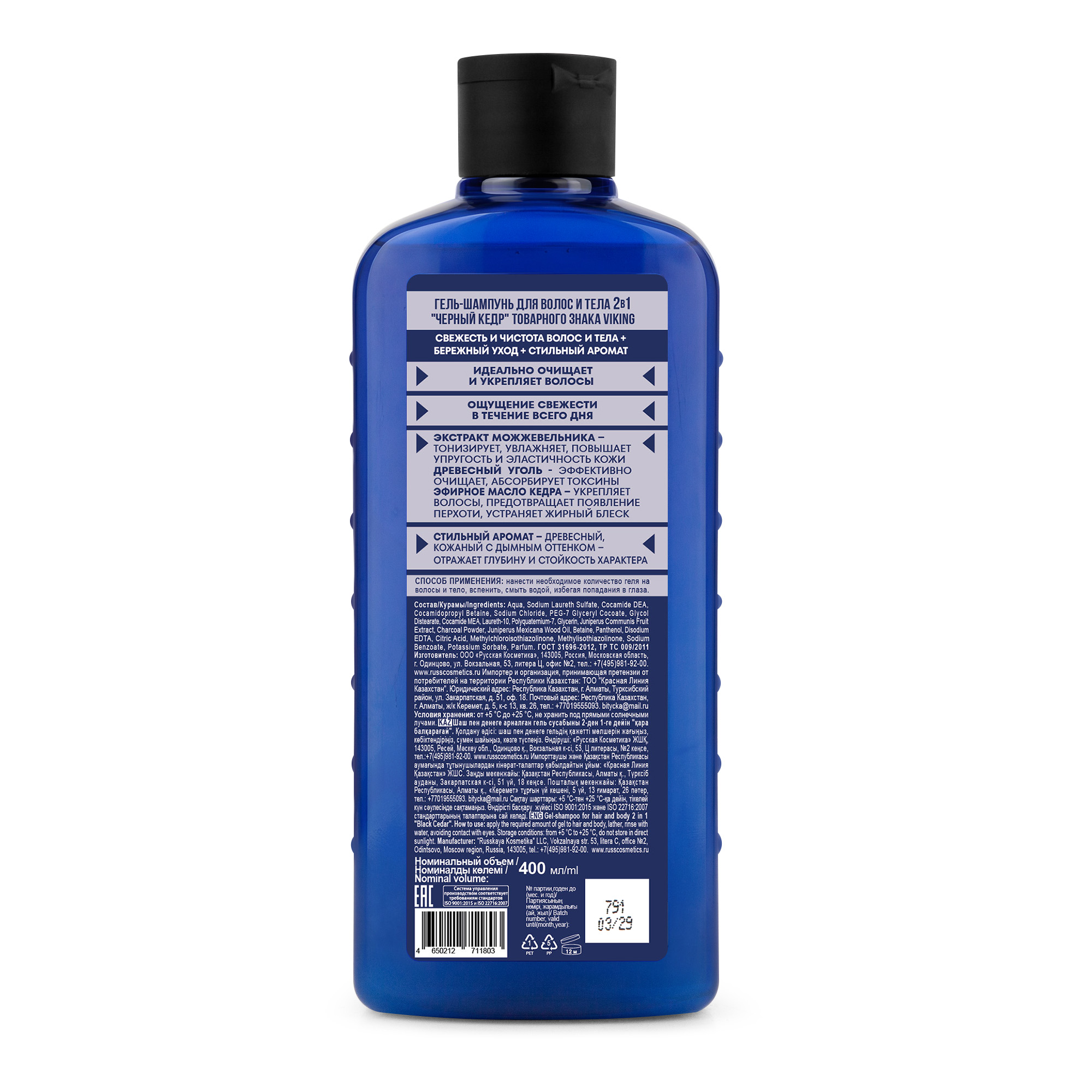 Активный уголь в составе формулы абсорбирует излишки кожного сала и очищает закупоренные поры. Экстракт можжевельника - увлажняет, повышает упругость и эластичность кожи, оказывает тонизирующий и освежающий эффект. Эфирное масло кедра - способствует укреплению волосяного стержня, предотвращает появление перхоти. Мягкость волос и кожи обеспечивает пантенол и бетаин.