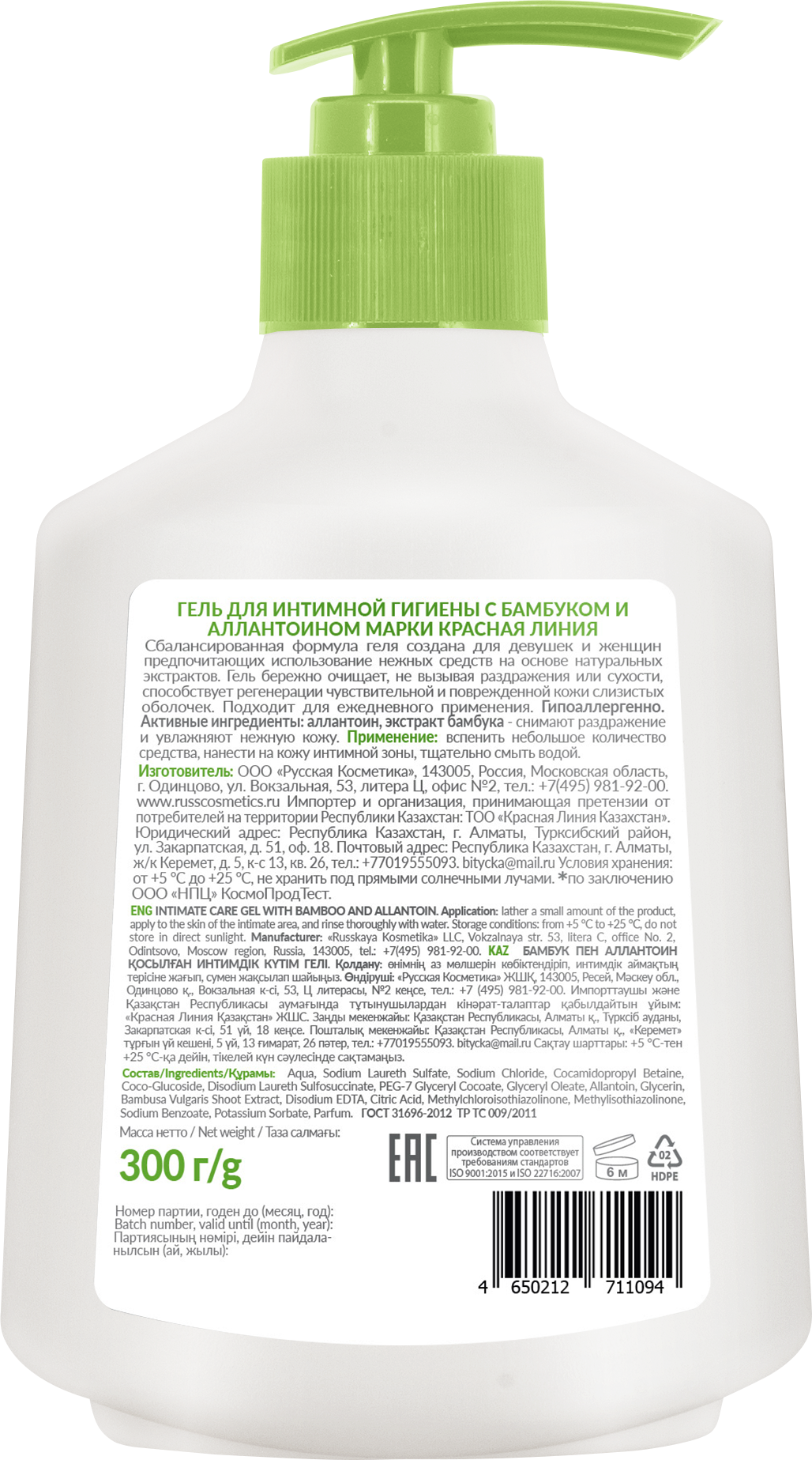 Активные ингредиенты: аллантоин, экстракт бамбука - снимают раздражение и увлажняют нежную кожу.