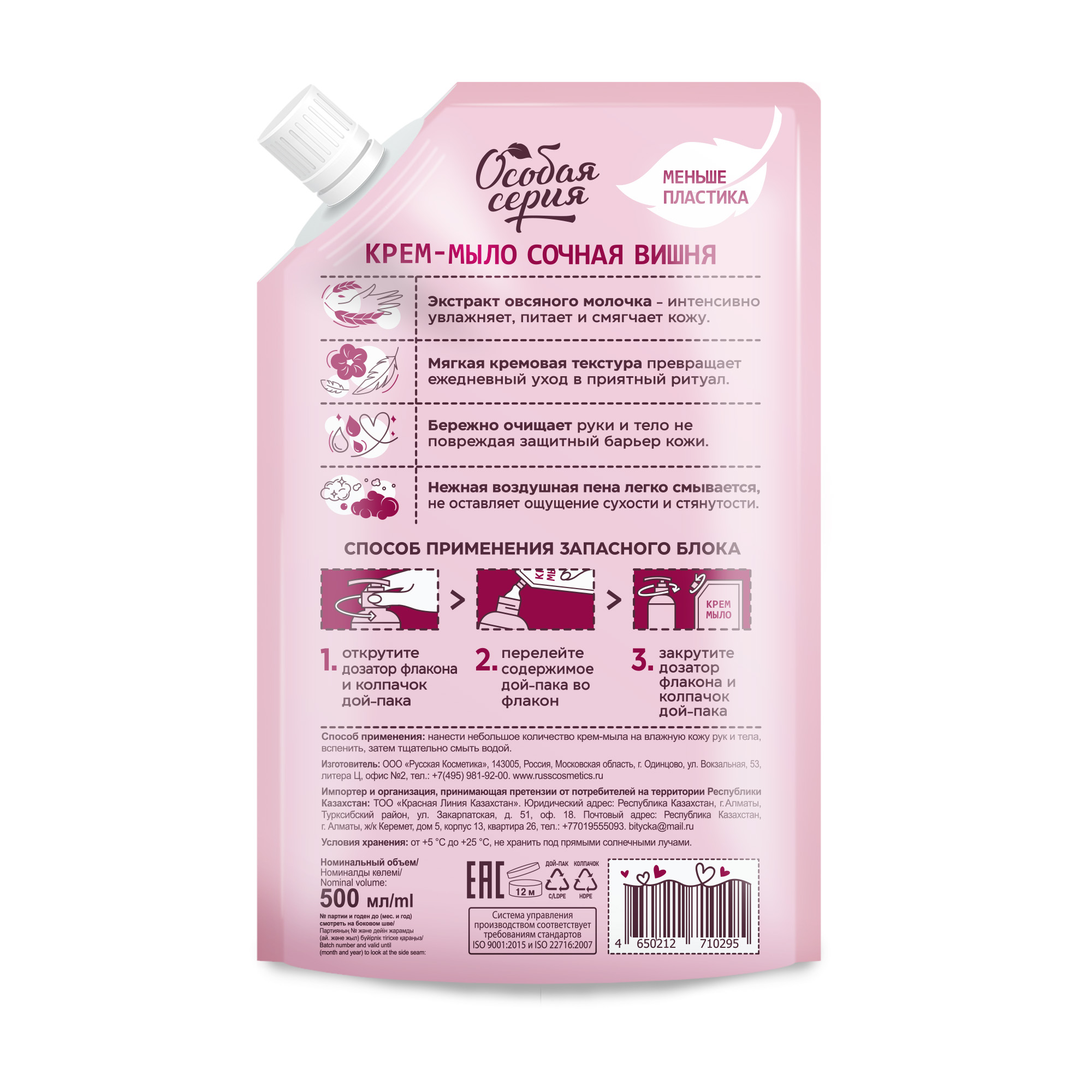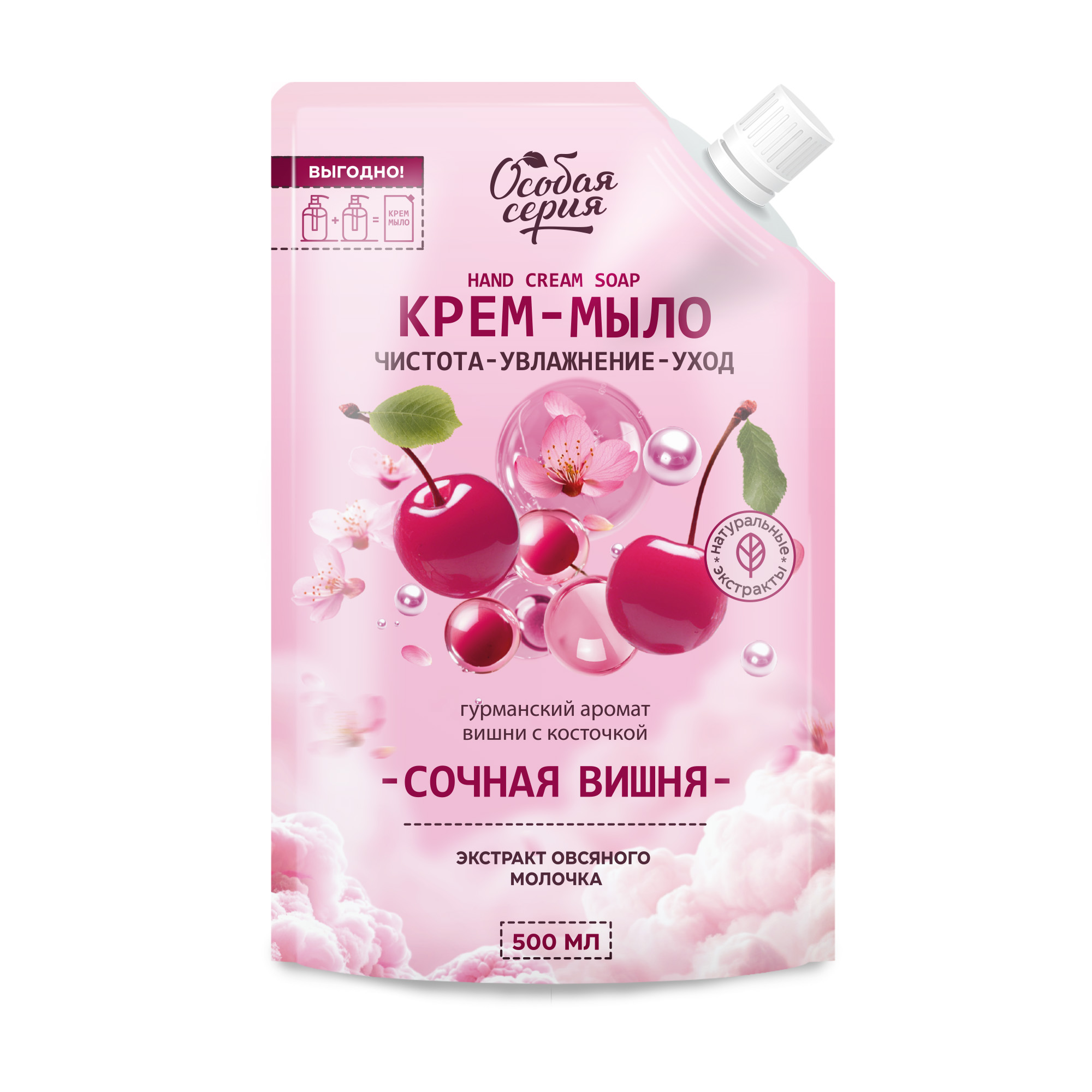 Крем-мыло с гурманским вишневым ароматом бережно ухаживает за кожей рук и тела. Кремовая текстура мыла прекрасно пенится, мягко очищает, не сушит кожу. Экстракт овсяного молочка в составе формулы - увлажняет, смягчает кожу, предотвращает появление сухости, поддерживает упругость и эластичность эпидермиса.