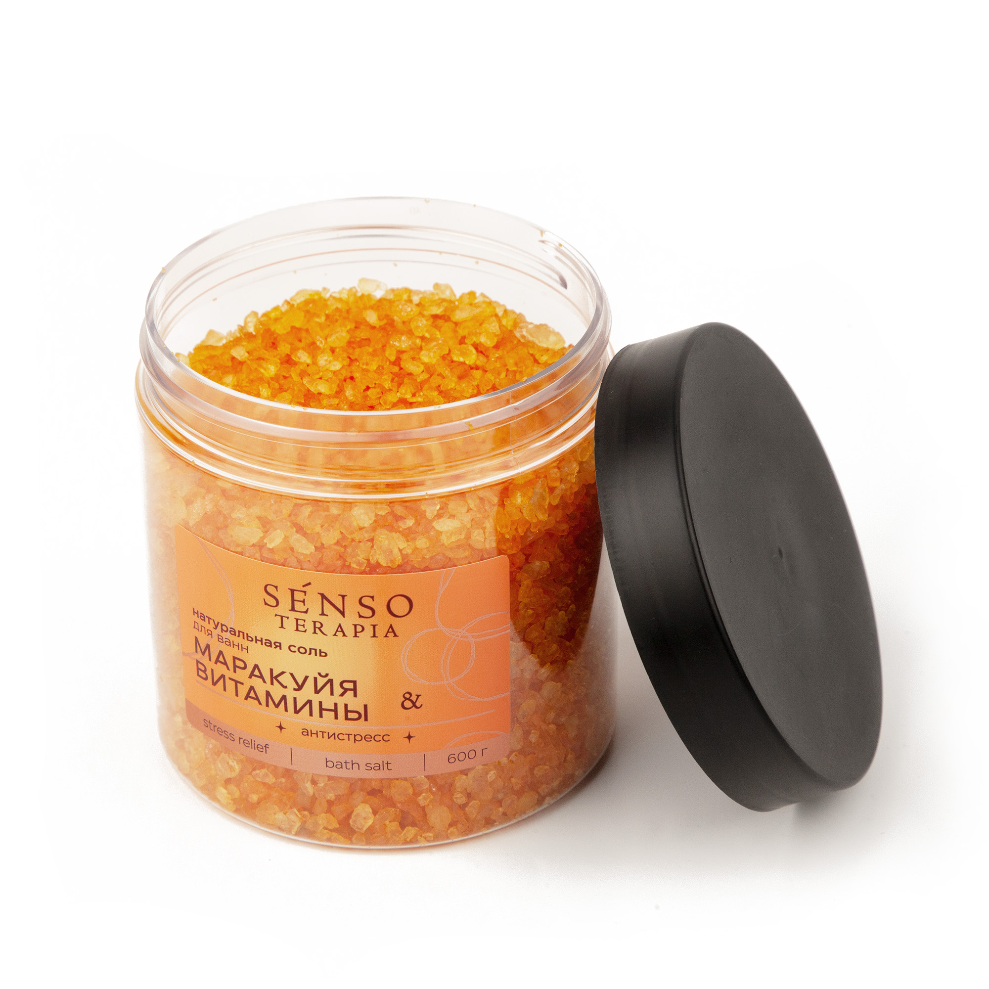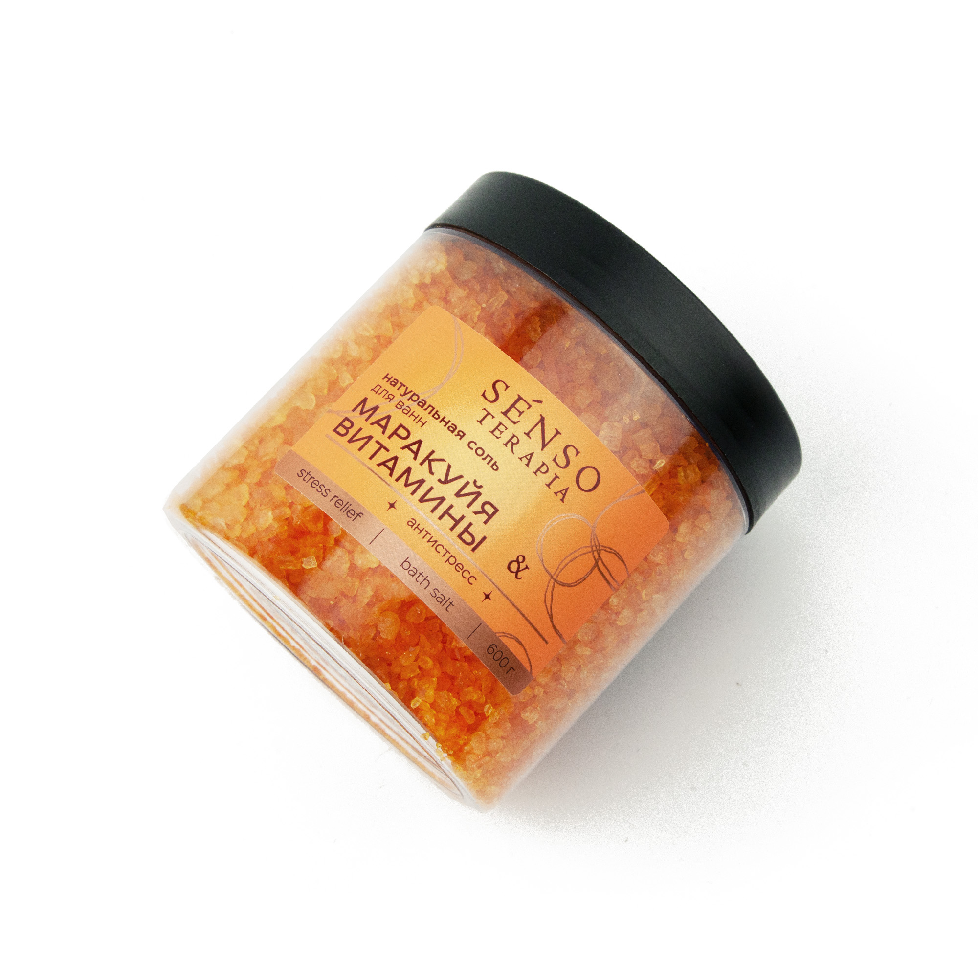 - Натуральная соль, обогащенная экстрактом маракуйи и витаминами, устраняет усталость в мышцах и плечах, способствует расслаблению и успокоению.