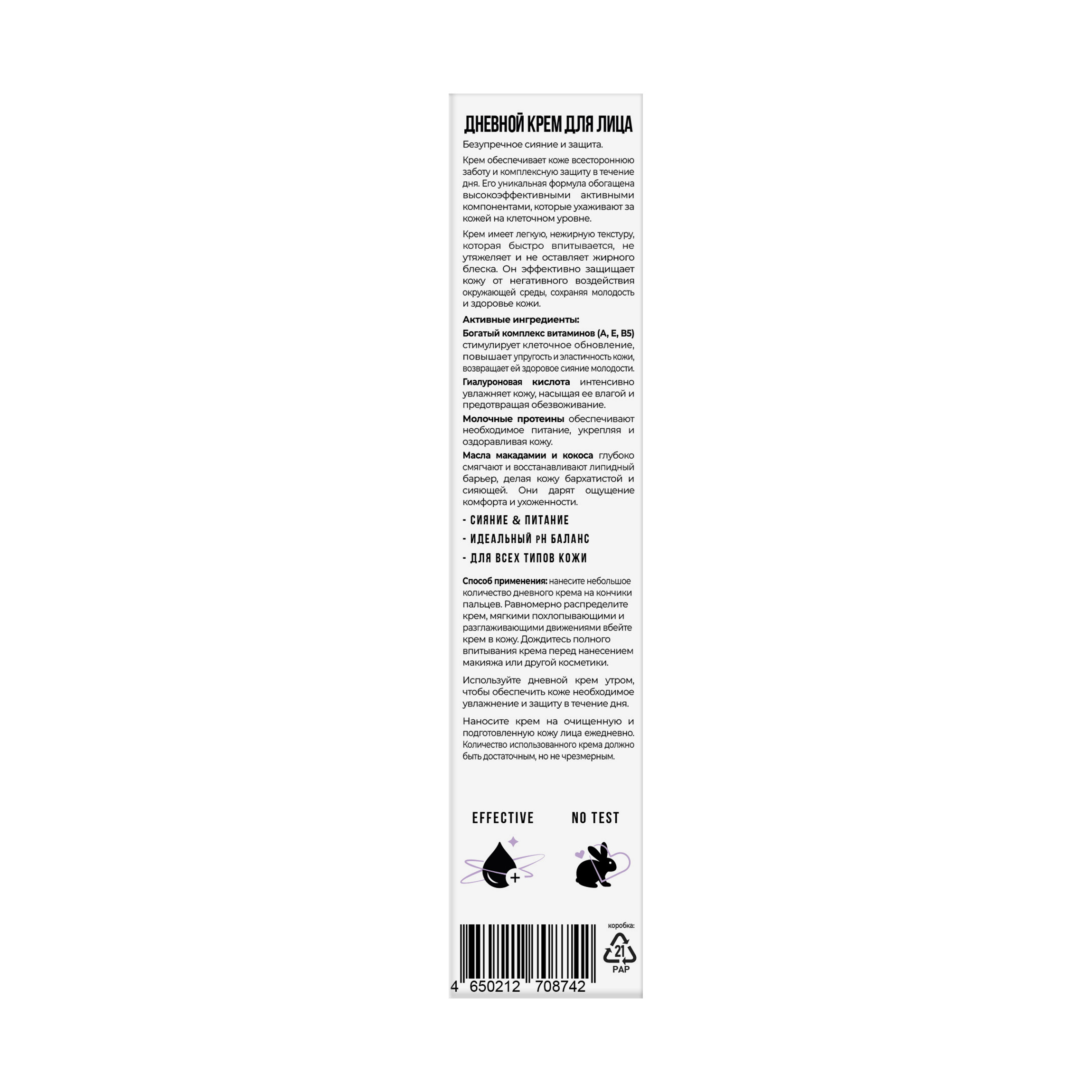 Наносите крем на очищенную и подготовленную кожу лица ежедневно. Количество использованного крема должно быть достаточным, но не чрезмерным.