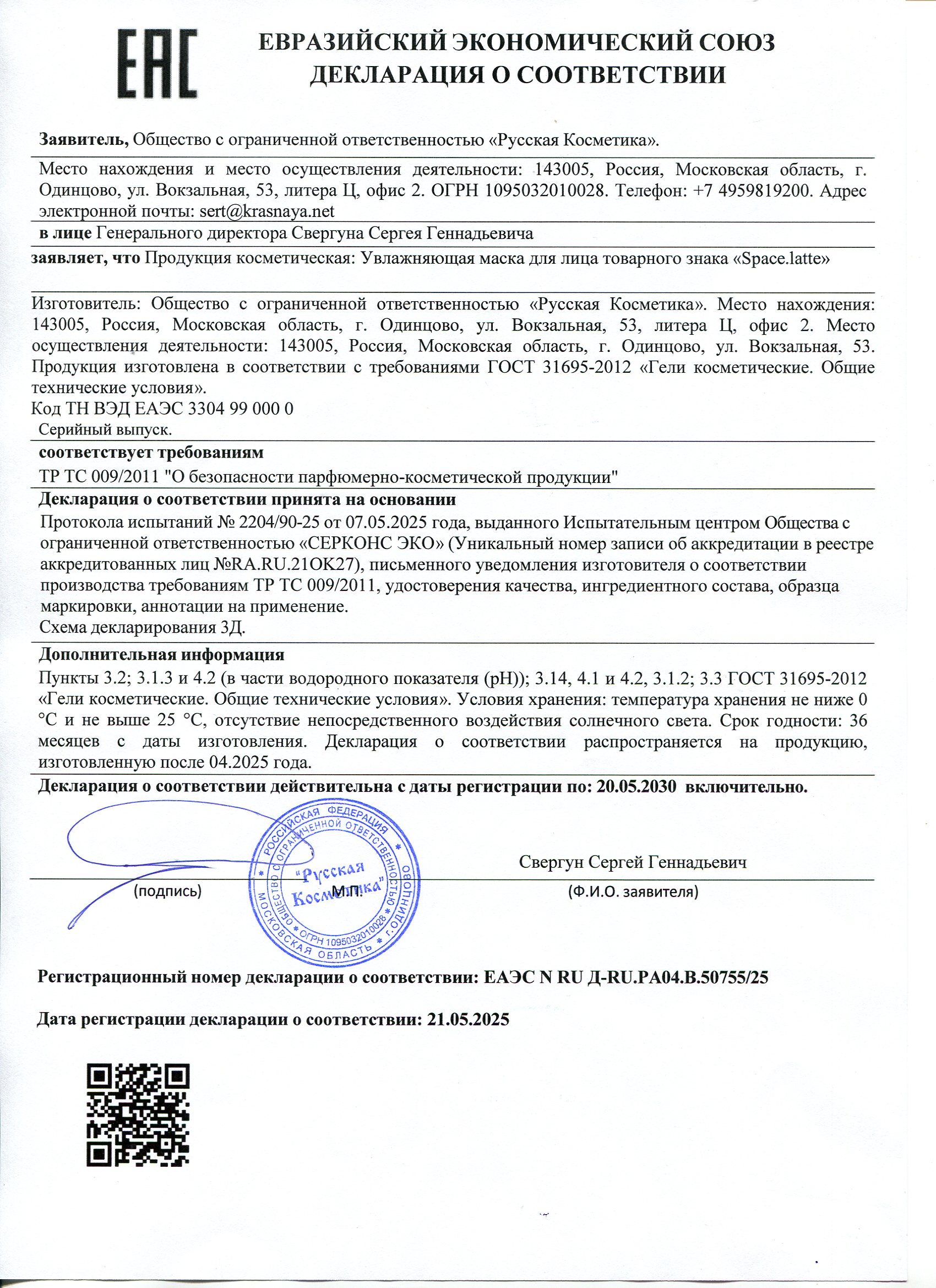 Маска имеет нежную текстуру, которая легко распределяется по коже и быстро впитывается, не оставляя ощущения липкости или дискомфорта. Она дарит коже интенсивное увлажнение и восстановление всего за 15-20 минут.