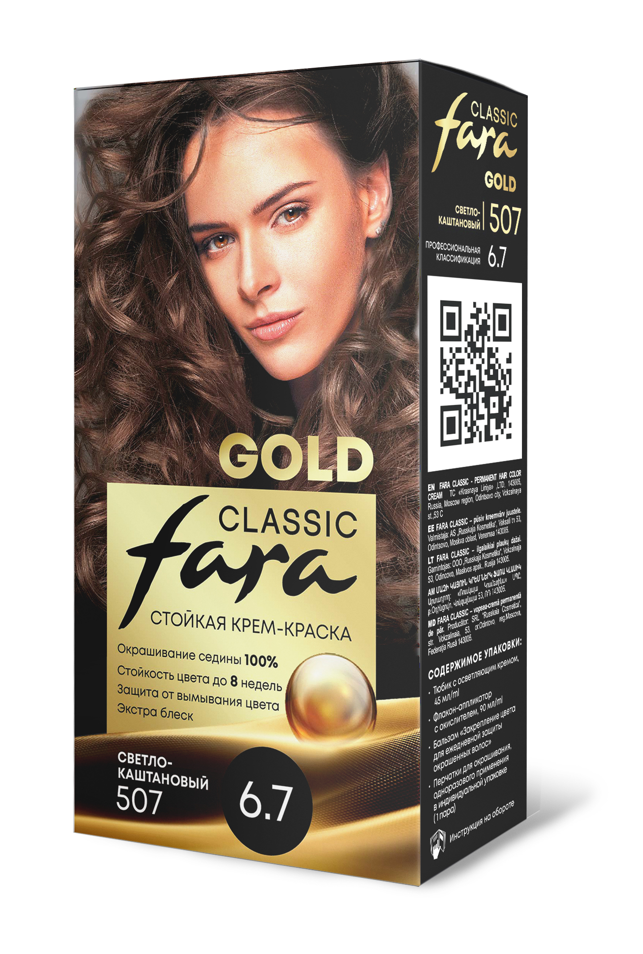 Стойкая крем-краска для волос Fara Classic Gold 507 Светло-каштановый - 6.7 - это 100% профессиональное закрашивание седины и стойкость цвета до 8 недель.