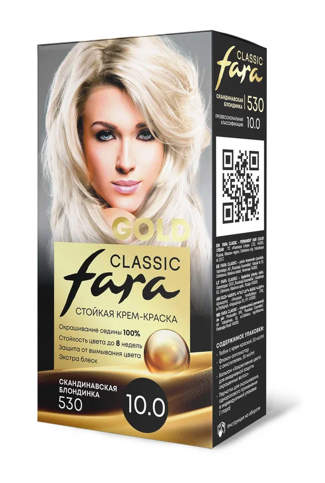 Стойкая крем-краска для волос Fara Classic Gold 530 Скандинавская блондинка - 10.0 - это 100% профессиональное закрашивание седины и стойкость цвета до 8 недель.