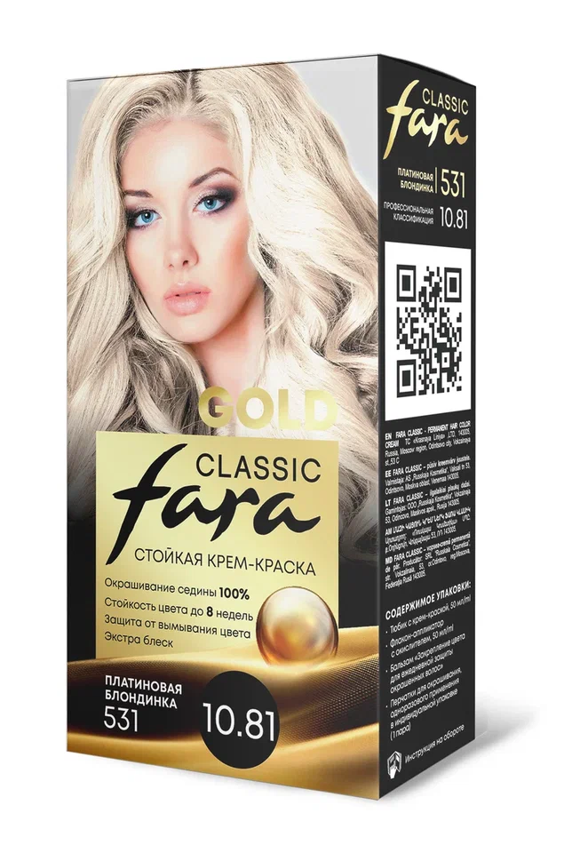 Стойкая крем-краска для волос Fara Classic Gold 531 Платиновая блондинка 10.81 - это 100% профессиональное закрашивание седины и стойкость цвета до 8 недель.
