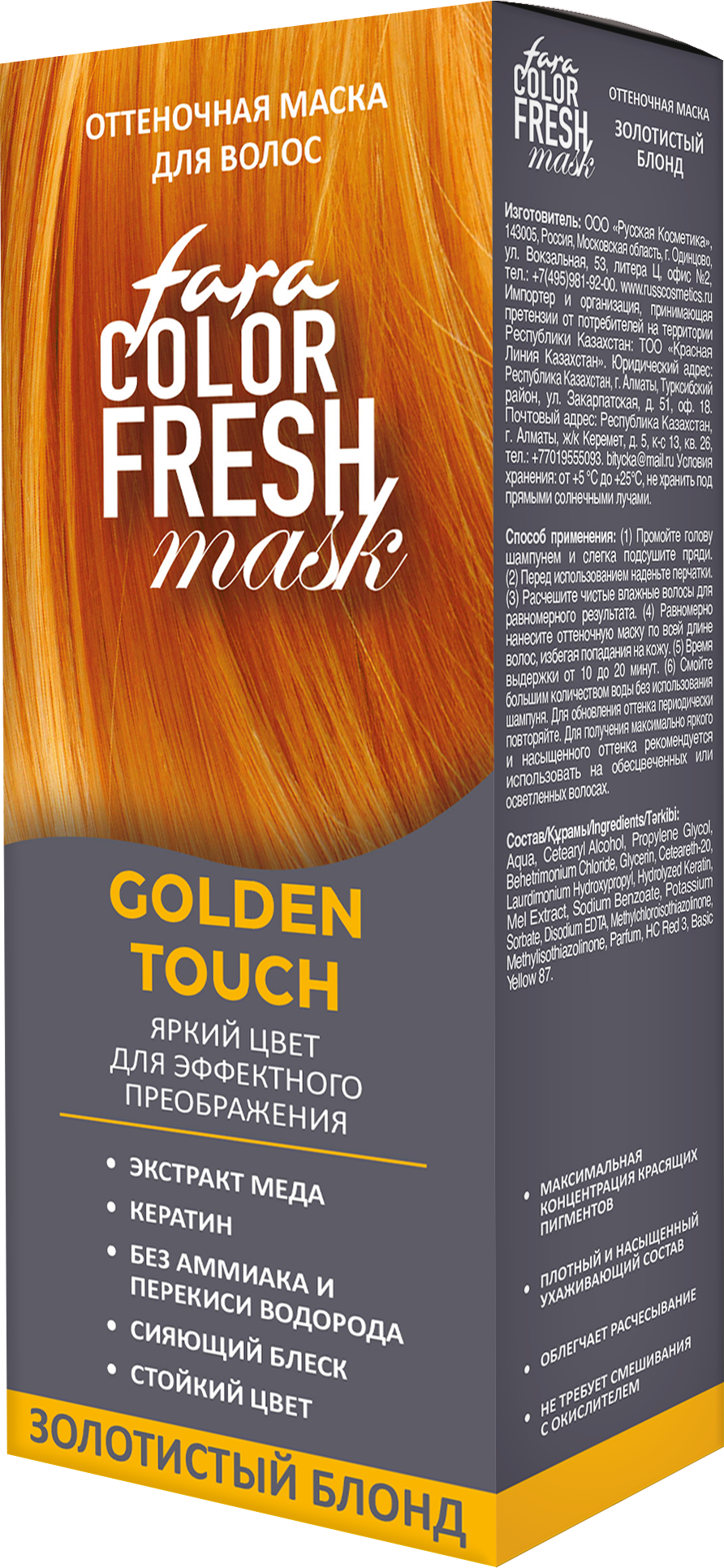Оттеночная маска для волос профессионального уровня Color Fresh марки Fara с максимально высоким содержанием ухаживающих компонентов*. Тонирует пряди в идеальный теплый блонд с золотистым оттенком, придавая волосам естественное сияние, благоприятно выделяет естественную красоту и подходит для различных типов внешности. Для получения максимально яркого и насыщенного оттенка рекомендуется использовать на обесцвеченных или осветленных волосах.