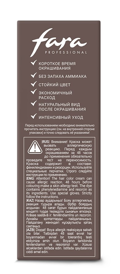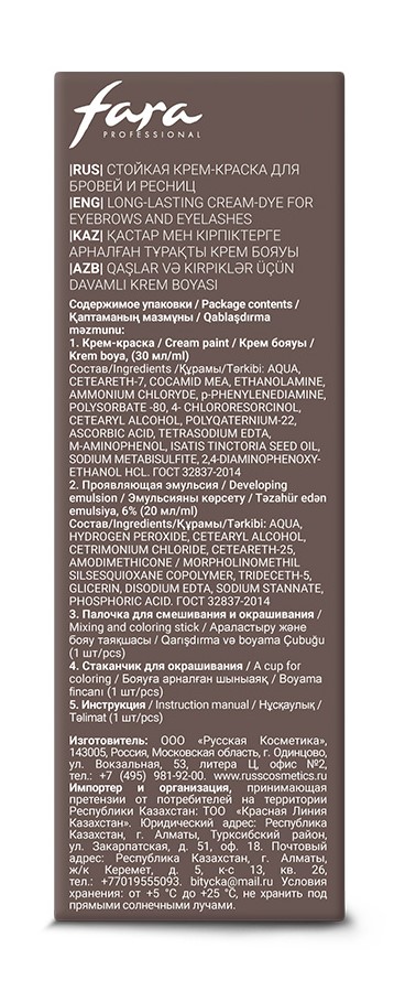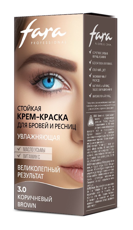 Специальная формула краски для бровей и ресниц Fara без аммиака и без запаха обеспечивает максимальный комфорт во время окрашивания и щадящее воздействие на чувствительную кожу вокруг глаз.