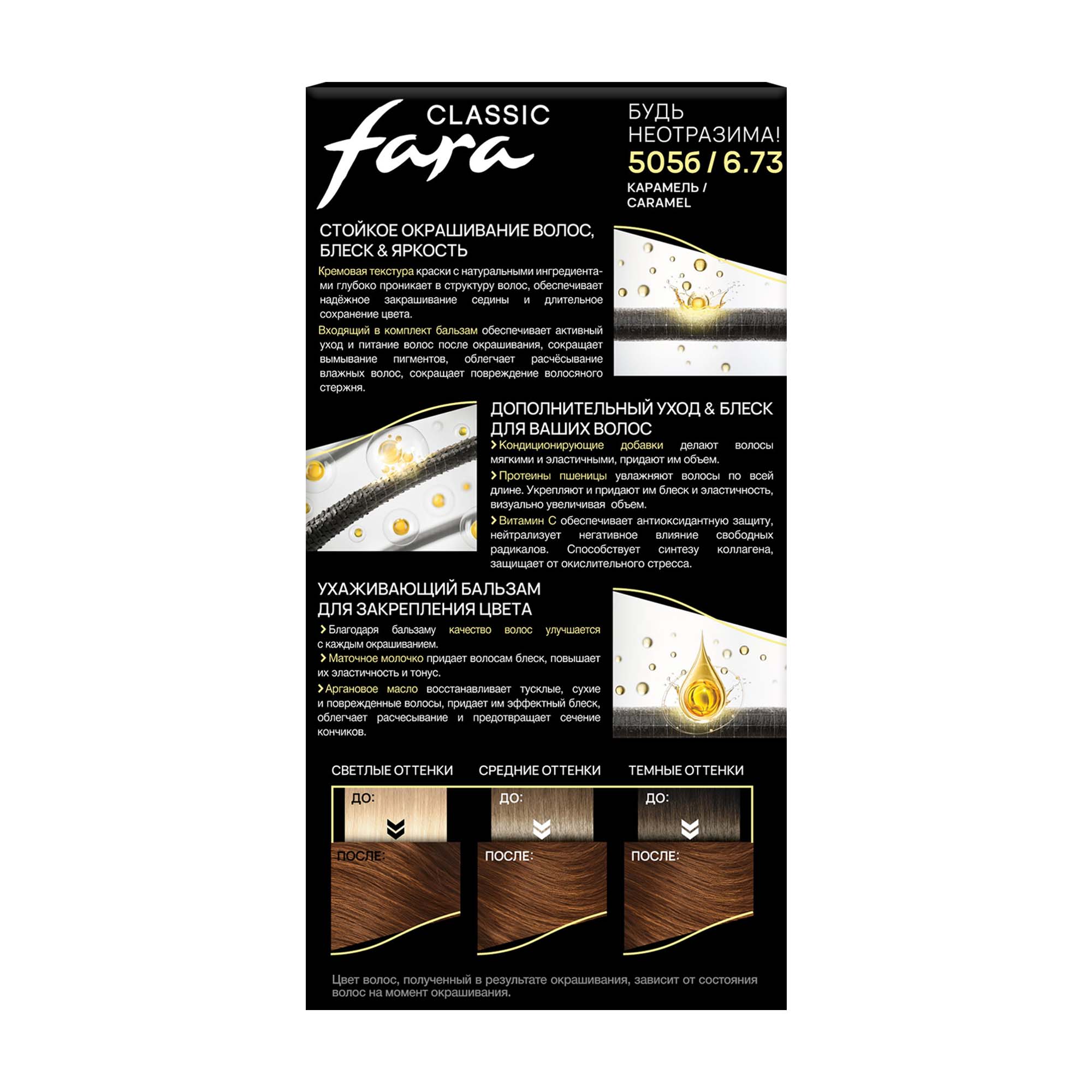Fara Classic 505б – классическая карамель, комбинация блонда с бежевым и золотом. Благодаря теплым отливам делает внешность мягче. Этот теплый оттенок подойдет светлокожим девушкам с голубыми, серыми и зелеными глазами.Отлично смотрится на локонах, кудрявых волосах и в сочетании со стрижкой каскад.
