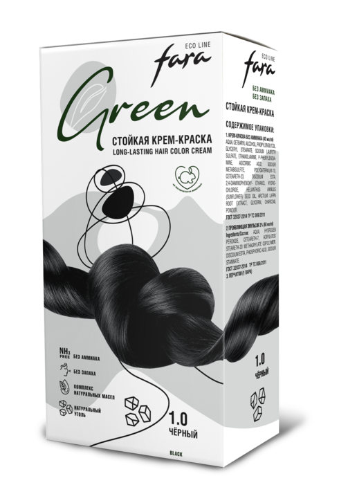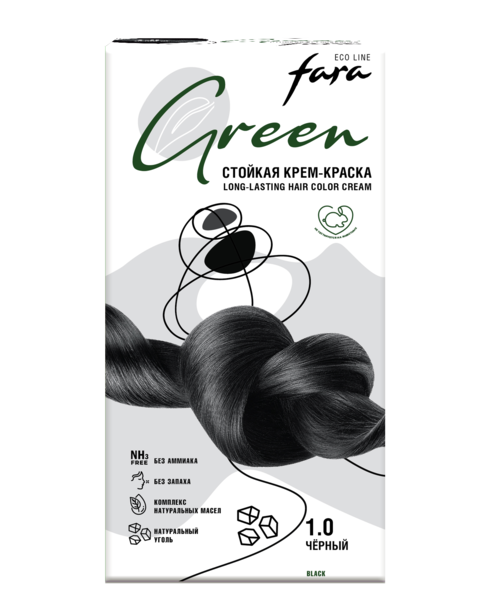 Новая стойкая крем-краска для волос Fara Eco Line Green 1.0 БЕЗ АММИАКА и БЕЗ ЗАПАХА со 100% натуральными активными компонентами.