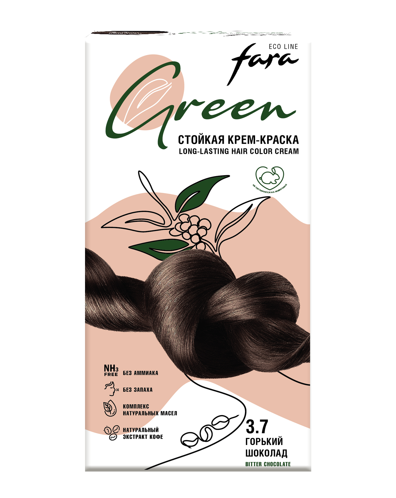 Новая стойкая крем-краска для волос Fara Eco Line Green 3.7 БЕЗ АММИАКА и БЕЗ ЗАПАХА со 100% натуральными активными компонентами.