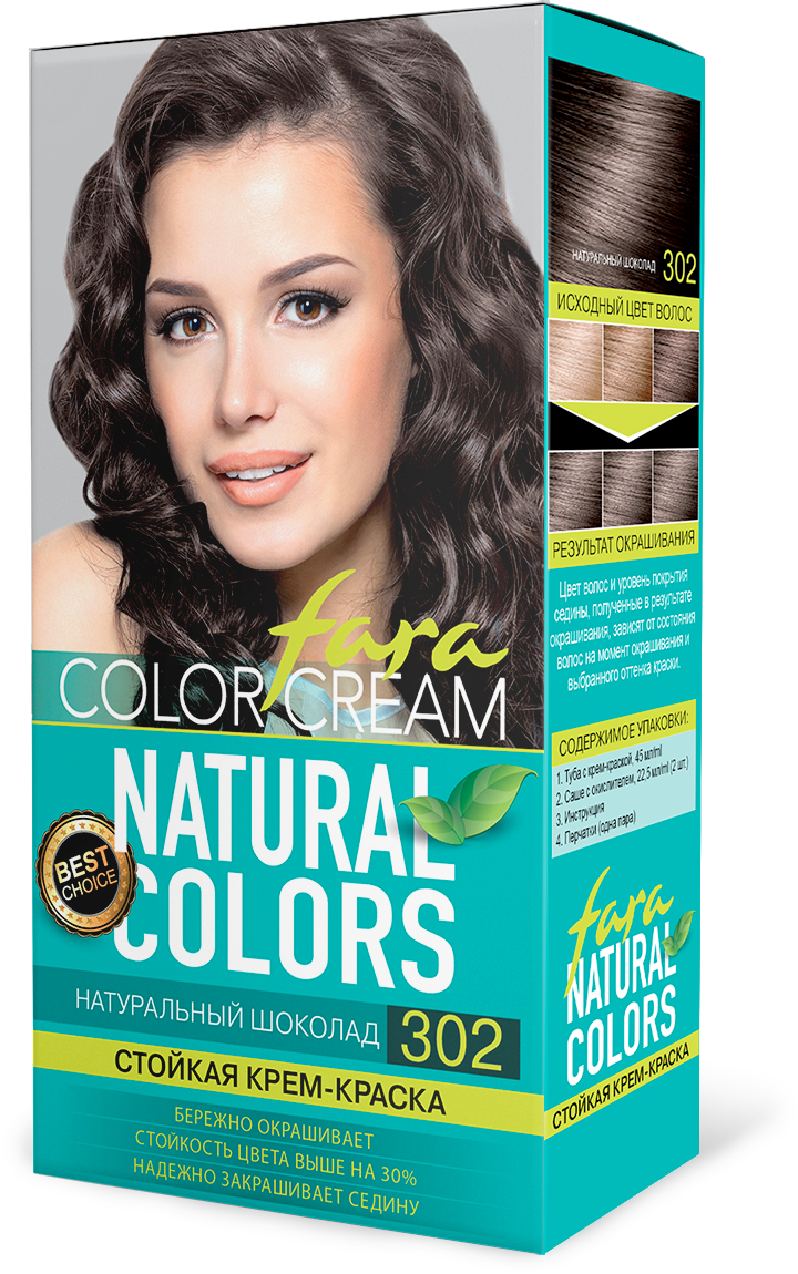 Специальная формула крем-краски Fara Natural 302 способствует более глубокому проникновению красителя в стержень волоса, делает оттенок более интенсивным и повышает его устойчивость на 30%.Результат окрашивания: