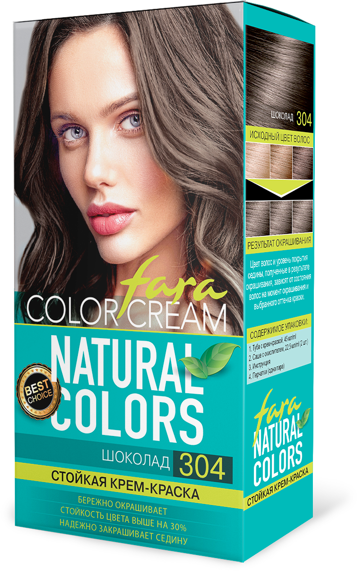Специальная формула крем-краски Fara Natural 304 Шоколад способствует более глубокому проникновению красителя в стержень волоса, делает оттенок более интенсивным и повышает его устойчивость на 30%.Результат окрашивания: