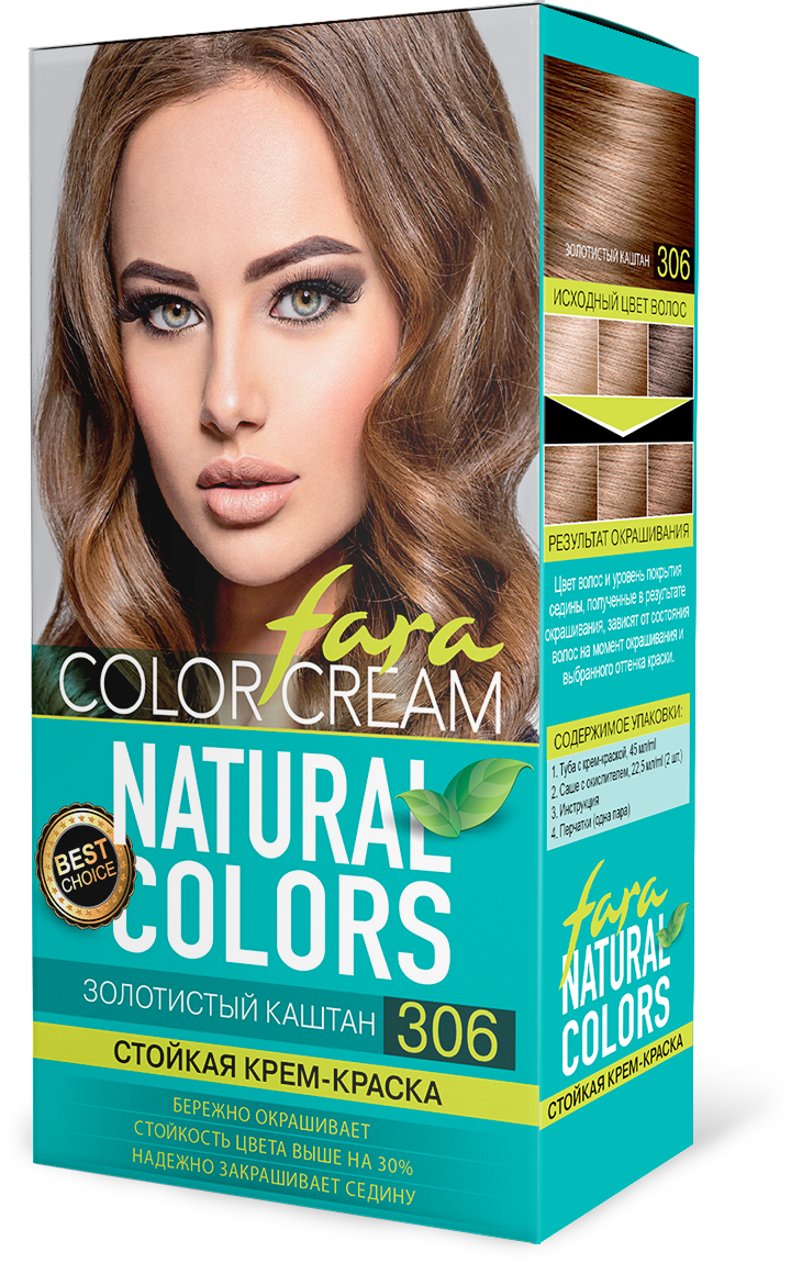 Специальная формула крем-краски Fara Natural 306 способствует более глубокому проникновению красителя в стержень волоса, делает оттенок более интенсивным и повышает его устойчивость на 30%.Результат окрашивания: