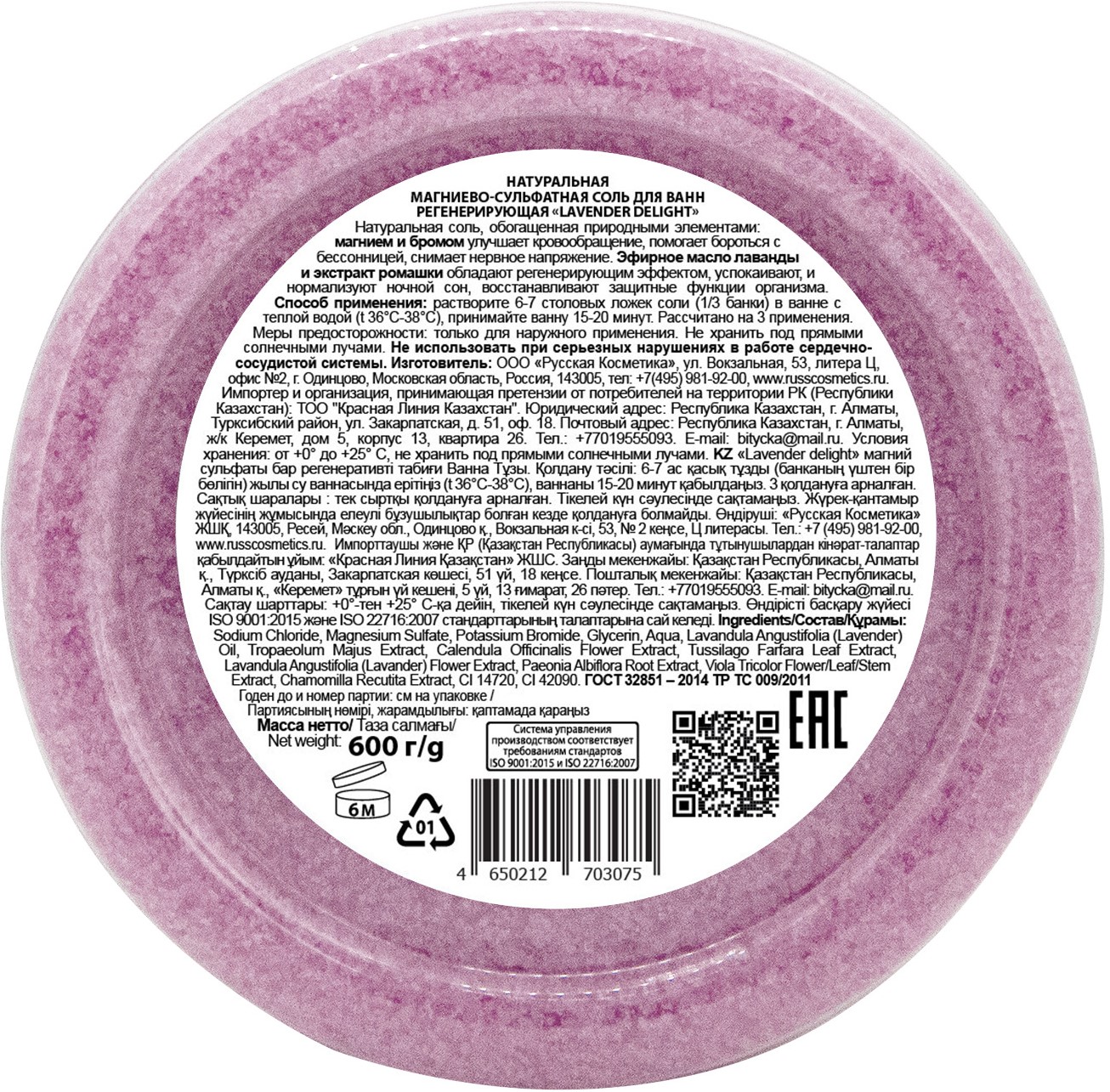 Натуральная соль, обогащенная природными элементами: магнием и бромом улучшает кровообращение, помогает бороться с бессонницей, снимает нервное напряжение. Эфирное масло лаванды и экстракт ромашки обладают регенерирующим эффектом, успокаивают, и нормализуют ночной сон, восстанавливают защитные функции организма.