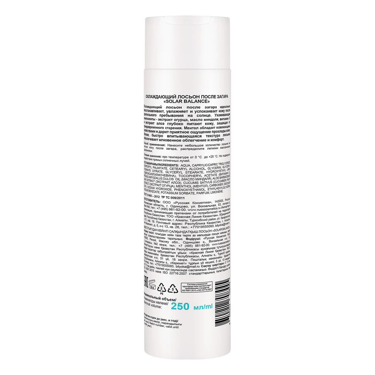 Охлаждающий лосьон после загара идеально восстанавливает, увлажняет и успокаивает кожу после длительного пребывания на солнце. Ухаживающие компоненты - экстракт огурца, масло миндаля, витамин Е и экстракт алоэ глубоко питают кожу, защищая от преждевременного старения. Ментол обладает освежающими свойствами и дарит приятное ощущение прохлады коже. Легкая, быстро впитывающаяся текстура лосьона обеспечивает мгновенное облегчение и комфорт.